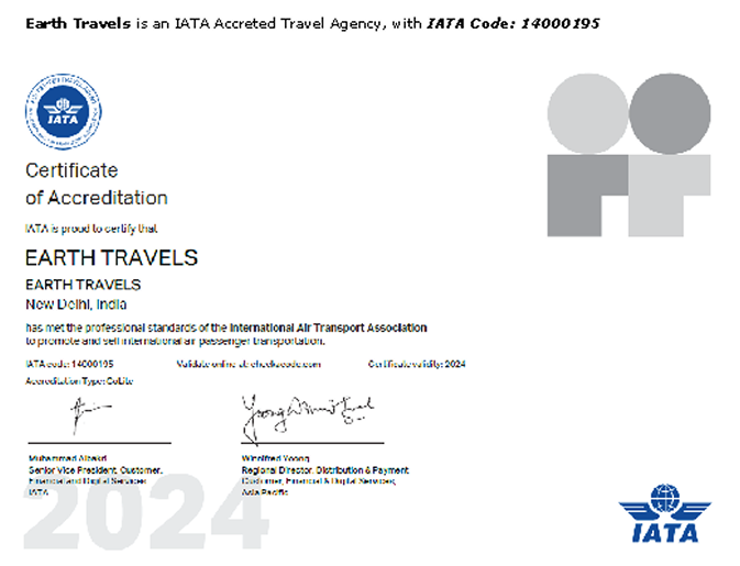 Earth Travels is a proud IATA-accredited travel agency, ensuring industry best practices, compliance, and reliability in every journey.
